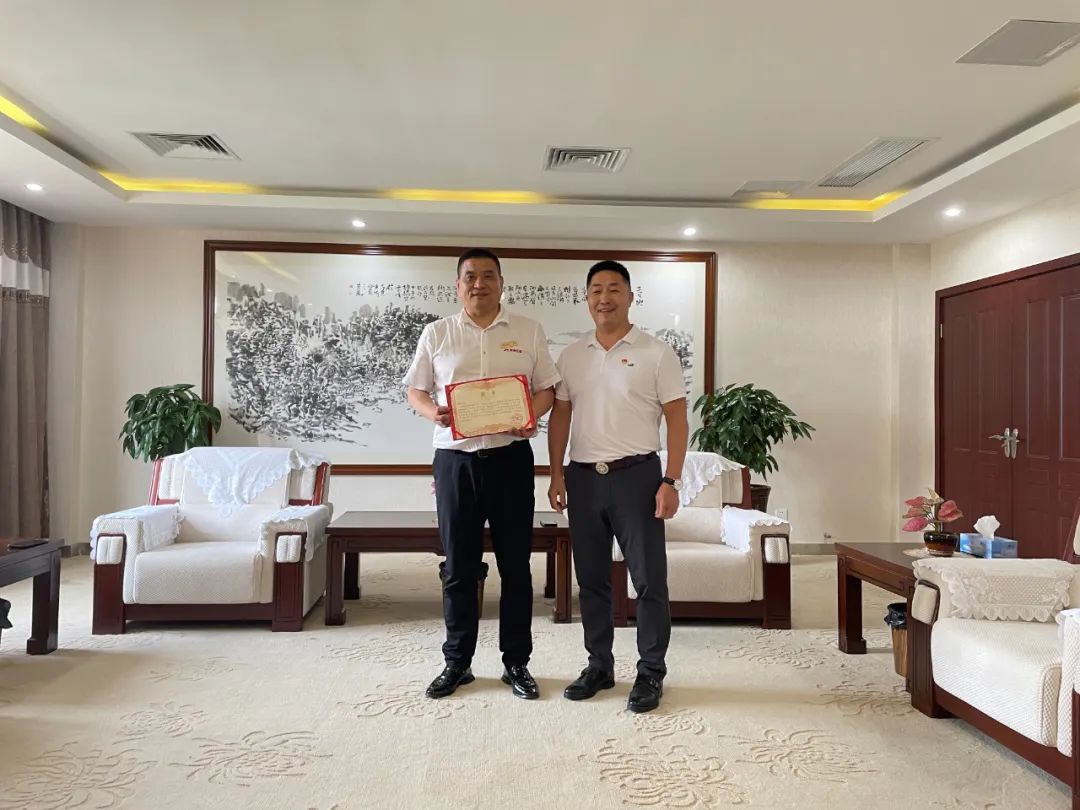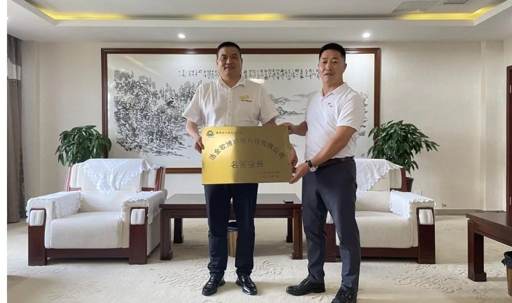 在貴賓接待室,呂會(huì)長(zhǎng)為歐博董事長(zhǎng)頒發(fā)“名譽(yù)會(huì)長(zhǎng)”牌匾并頒發(fā)聘書(shū) 。